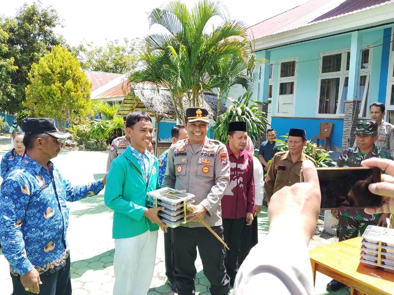 TOUNA – Kapolres Tojo Una Una, AKBP Ridwan J.M. Hutagaol, S.I.K., S.H. menghadiri pendistribusian Makan Bergizi Gratis (MBG) di tiga sekolah yang ada di Kecamatan Ampana Kota, Kamis (17/04/2025) pukul 09.00 Wita.